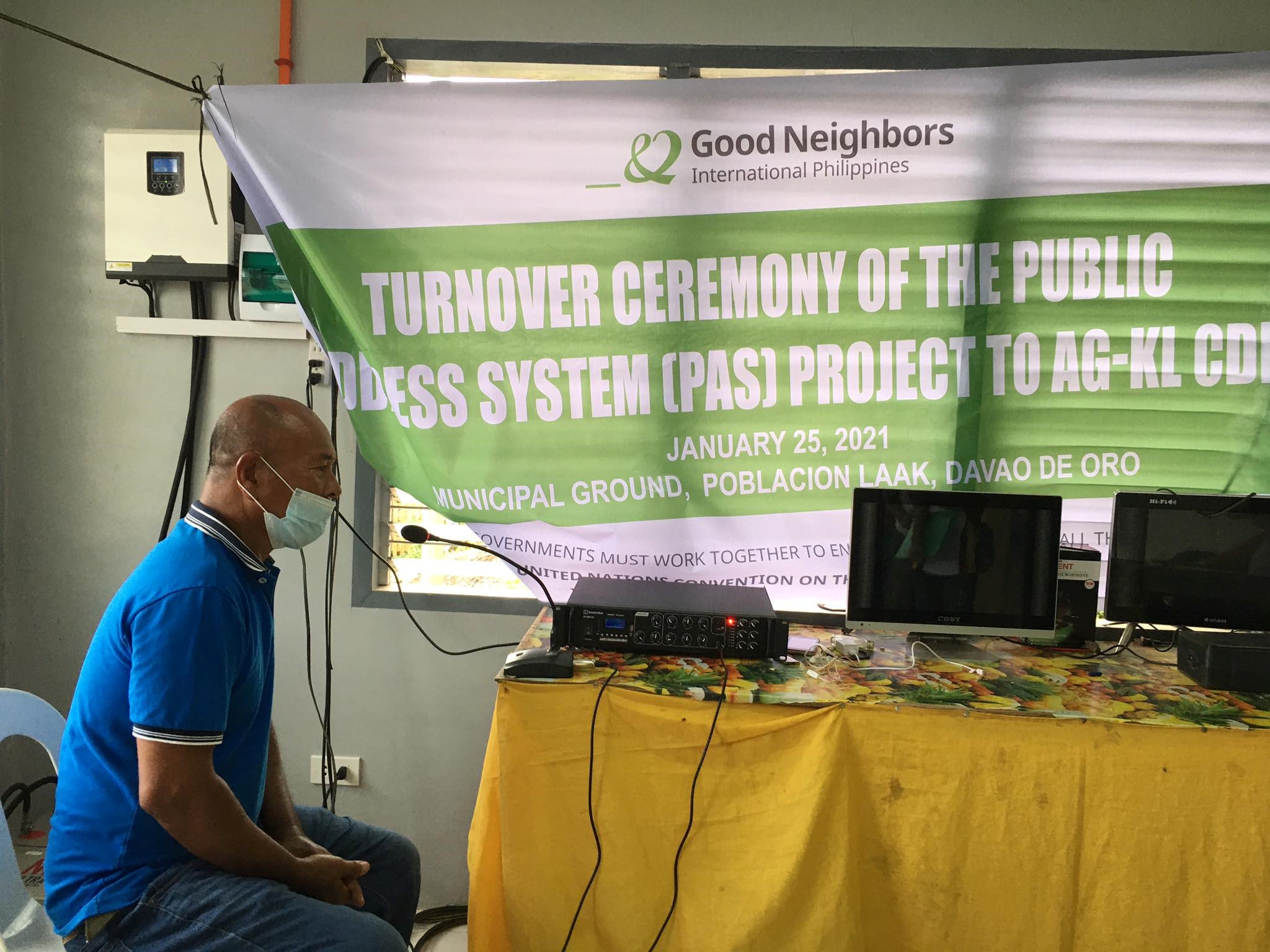 In the special Barangays Limot, Candiis, Libuton, and Mag-Agbay in Laak, Davao de Oro, the Public Address System (PAS) provided is now being used for information dissemination to the community members without the risk of infecting the others. These four barangays were the first barangays in Aguinaldo to have installed a PAS.