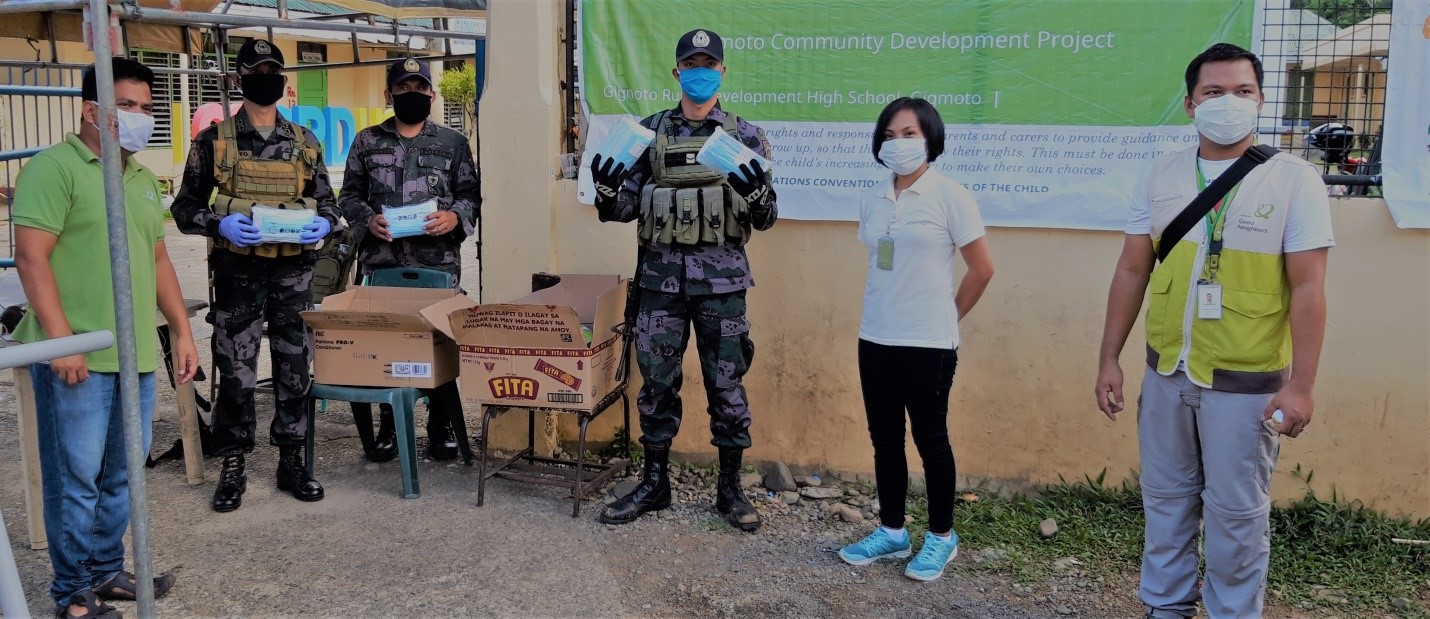 About 4,790 pieces of face masks, 46 gallons of alcohol, and other support were distributed to a total of 130 frontliners in 9 barangays and 6 other frontline offices, such as Bureau of Fire Protection (BFP), Philippine National Police (PNP), Municipal Disaster Risk Reduction and Management Office (MDDRMO), Municipal Office, Rural Health Unit (RHU), and District Hospital by the Community Development Project of Gigmoto in Catanduanes.