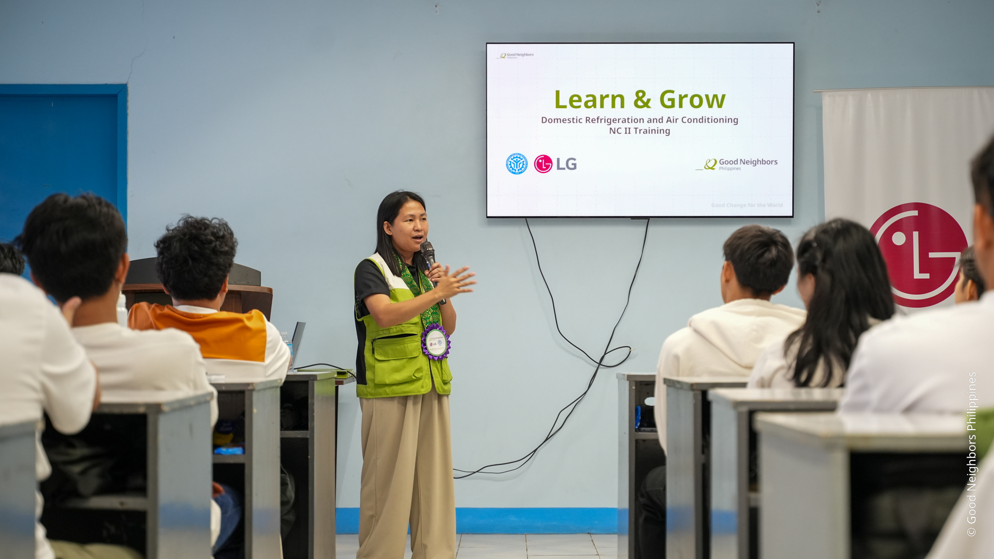 Each partner plays a vital role in the success of the initiative. Good Neighbors Philippines provides scholarships and ongoing support to ensure that trainees can fully participate in the program. TESDA Cainta delivers a 288-hour training curriculum, facilitated by certified trainers and leading to national certification. Meanwhile, LG Electronics Philippines strengthens the program by supporting pathways toward employment and promoting long-term career opportunities for the trainees.